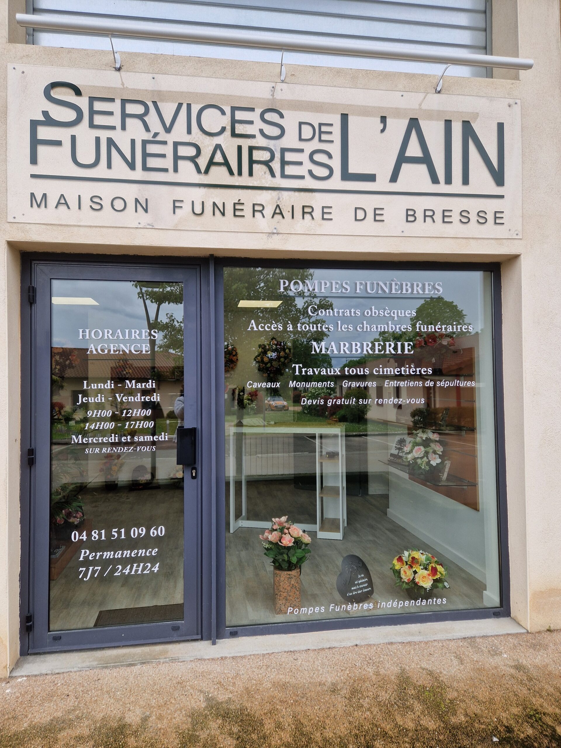 * En dehors des horaires d’ouverture, vous pouvez contacter les pompes funèbres sur la permanence téléphonique : , 24h/24 - 7j/7 y compris dimanches et jours fériés.