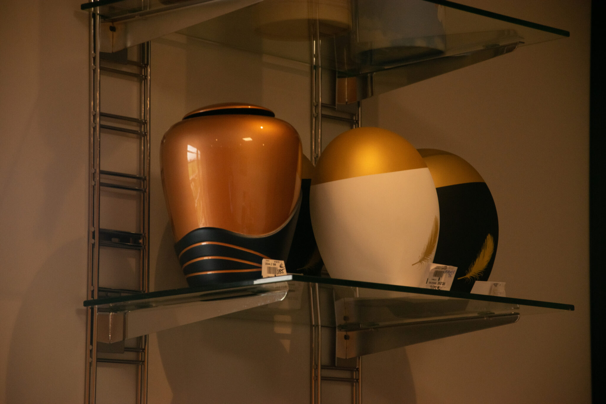 - – les articles : cercueil, capiton, urne, fleurs, plaques;